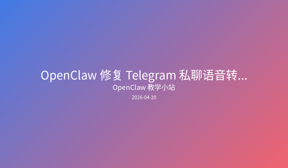 OpenClaw 最新版本修复了一个影响用户体验的关键问题——Telegram 私聊(DM)中的语音消息现在可以正常转录为文字了。此前,只有群聊中的语音消息会被自动转录,私聊发送的语音则显示为无法读取的 占位符。