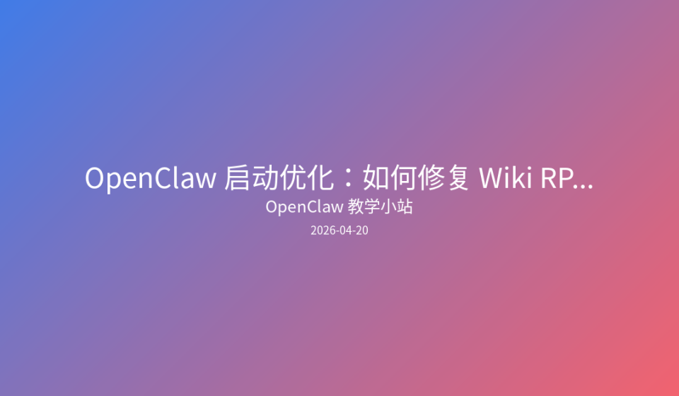 OpenClaw 启动优化:如何修复 Wiki RPC 探测导致的 3 秒延迟