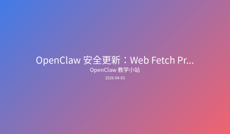 OpenClaw 安全更新:Web Fetch Provider 边界强化详解已关闭评论