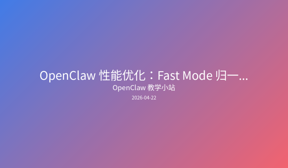 • OpenClaw Fast Mode 完整配置手册