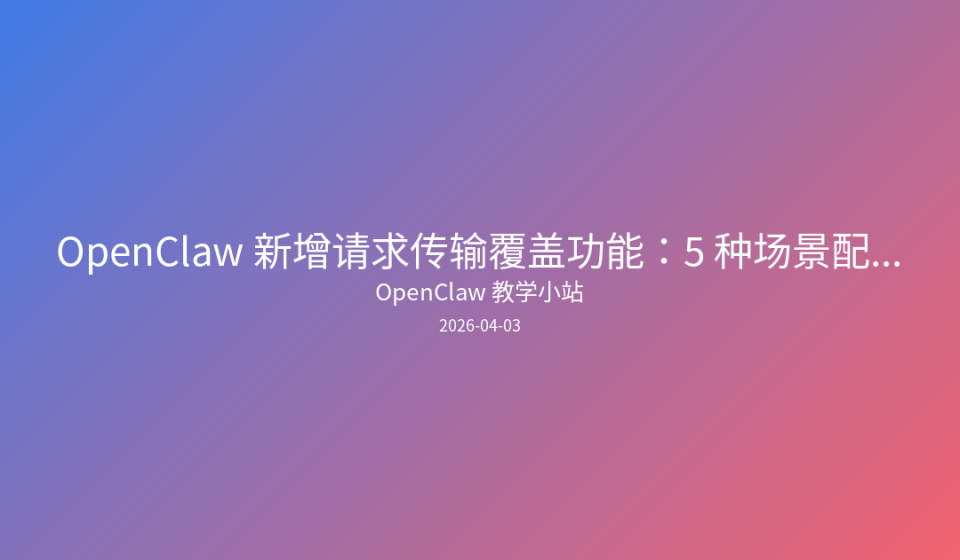 OpenClaw 新增请求传输覆盖功能:5 种场景配置详解