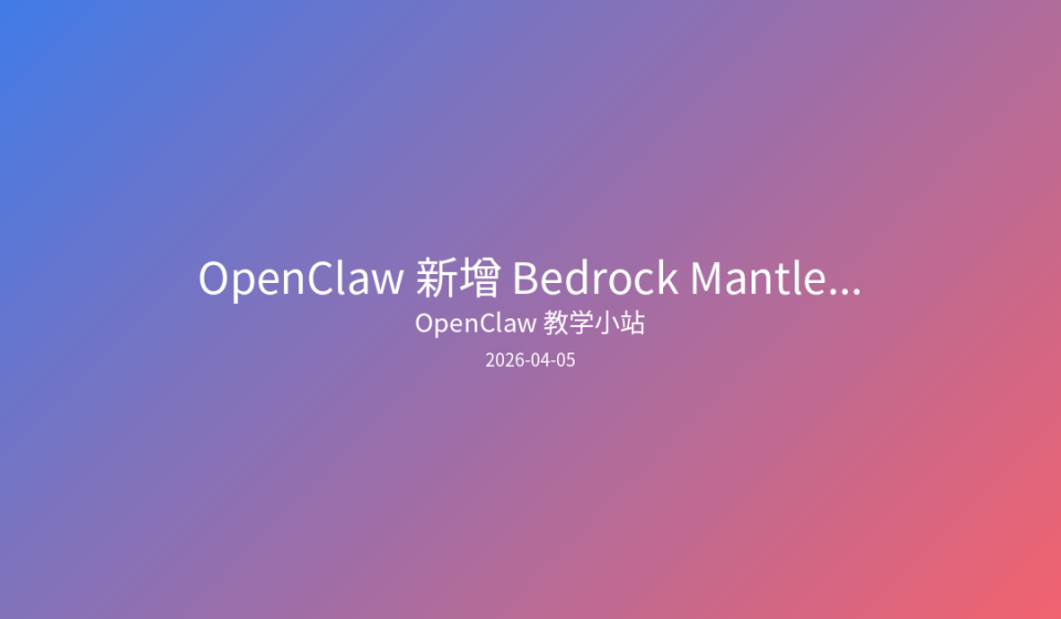 OpenClaw 最新版本新增了对 Amazon Bedrock Mantle 的原生支持,让你可以通过熟悉的 OpenAI 兼容 API 格式调用 AWS Bedrock 的先进模型。本文将详细介绍这一新功能的配置方法和使用技巧。