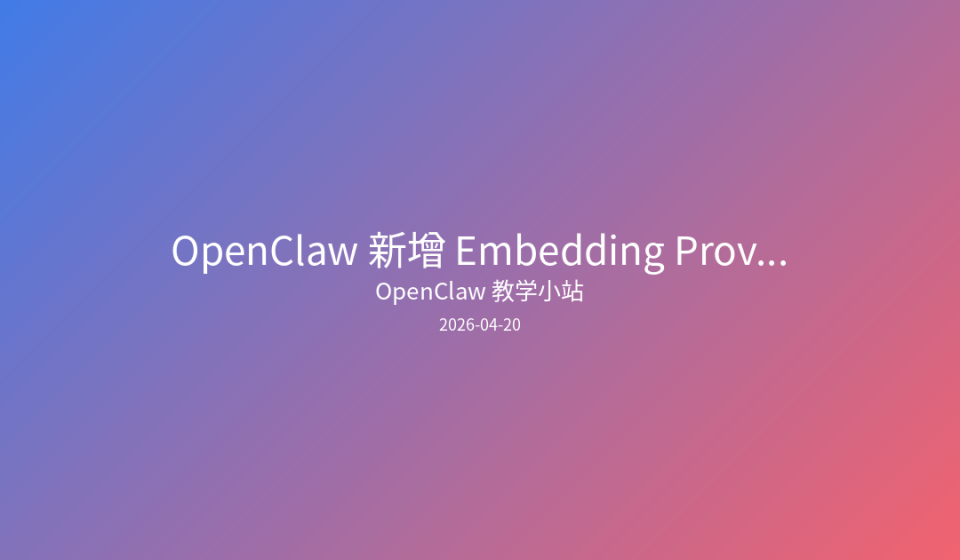 OpenClaw 最新合并的 PR #61718 正式引入 Embedding Provider 支持,让 AI Agent 能够通过语义向量实现精准的记忆检索,彻底告别关键词匹配的局限。