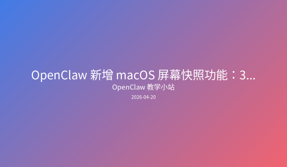 在 AI Agent 的开发和运维过程中,可视化监控是定位问题的关键手段。此前,OpenClaw 在 macOS 平台上的屏幕捕获能力有限,开发者往往需要借助第三方工具(如 QuickTime、OBS)或复杂的脚本实现类似功能。