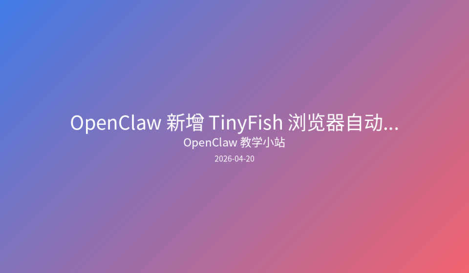 • 来源:OpenClaw 官方文档;链接:https://docs.openclaw.dev| TinyFish 官方网站 | https://tinyfish.dev |
