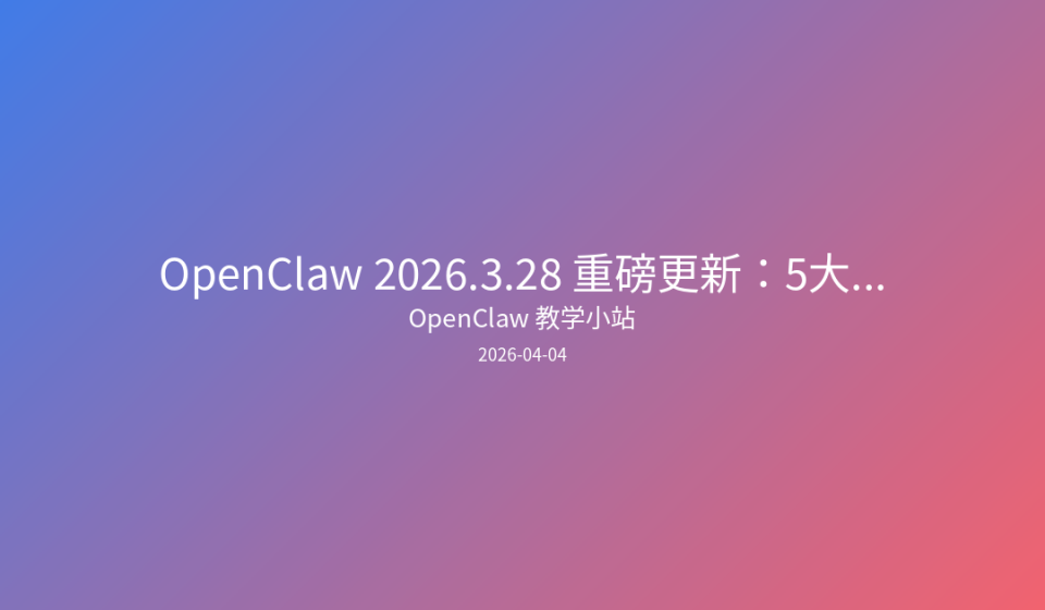 OpenClaw 2026.3.28 版本带来了多项架构级更新,涵盖 AI 模型提供商整合、插件安全机制 和 容器化部署优化。本文将解析 5 个核心变更,并提供从旧版本平滑迁移的具体操作步骤。