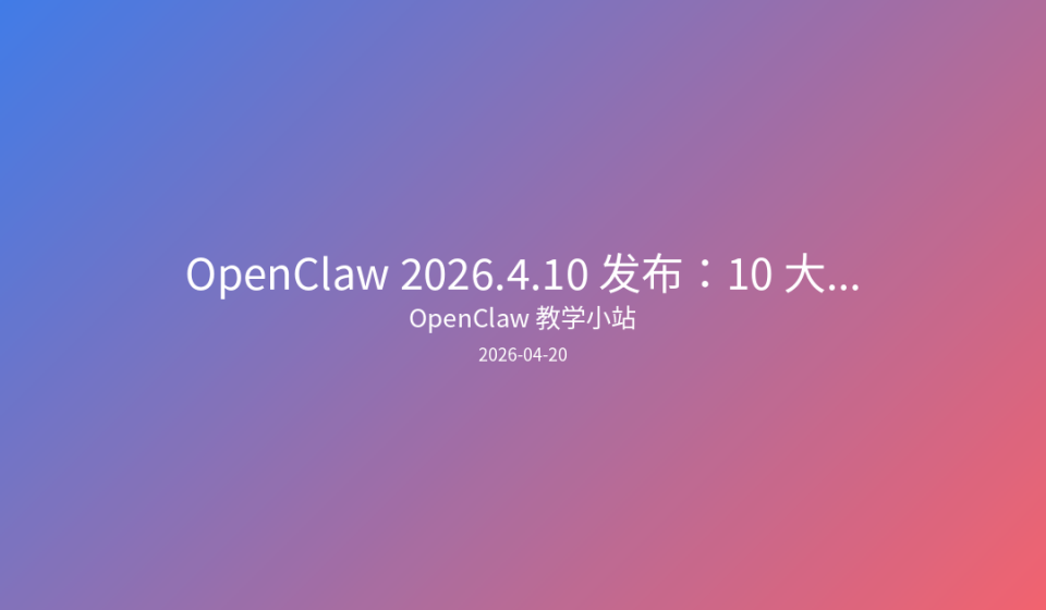 OpenClaw 2026.4.10 的核心价值在于降低 AI Agent 的记忆管理成本和扩展企业部署场景。建议优先尝试: