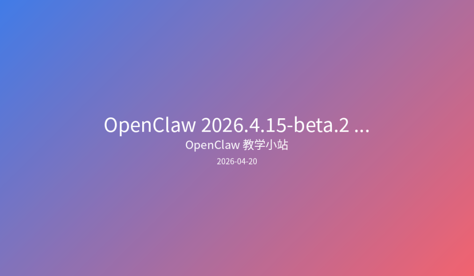 • OpenClaw 2026.4.15-beta.2 发布:5大更新详解,Claude Opus 4.7 与 Gemini TTS 如何配置?
