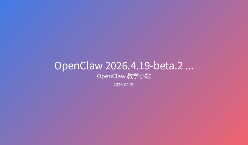 • 来源:官方 Release Notes;链接:https://github.com/openclaw/openclaw/releases/tag/v2026.4.19-beta.2