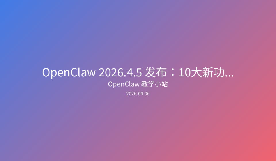 OpenClaw 2026.4.5 发布:10大新功能解析与升级指南已关闭评论