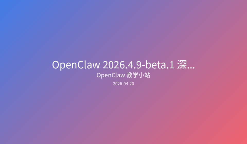 OpenClaw 2026.4.9-beta.1 深度解析:5大核心更新与安全防护升级