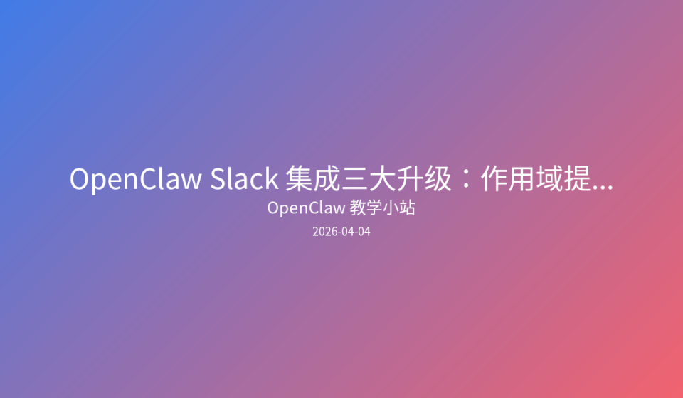 OpenClaw 最新版本针对 Slack 集成进行了三项关键优化:引入作用域提示(Scoped Prompts)实现上下文精准控制、修复 mrkdwn 格式渲染问题、并简化配置结构移除冗余覆盖项,让 AI Agent 的 Slack 交互更智能、更稳定。