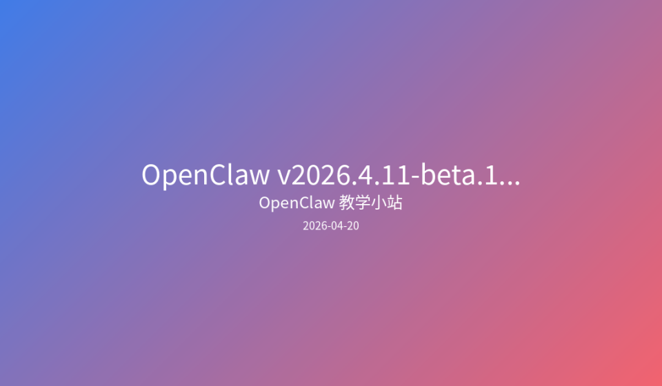 OpenClaw v2026.4.11-beta.1 标志着三个重要演进方向: