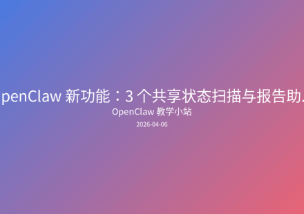 OpenClaw 新功能:3 个共享状态扫描与报告助手重构技巧