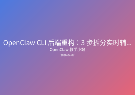 OpenClaw CLI 后端重构:3 步拆分实时辅助工具提升开发效率