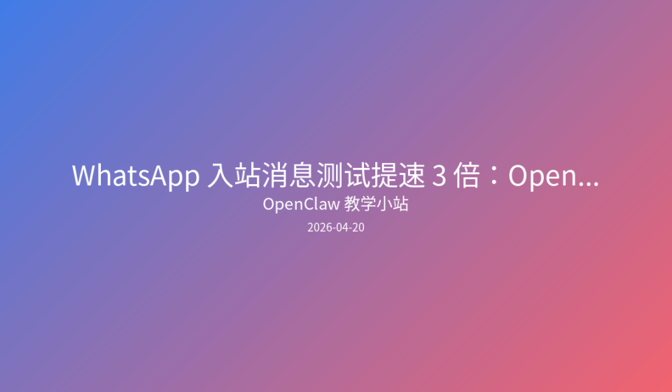 WhatsApp 入站消息测试提速 3 倍:OpenClaw 重构实战解析