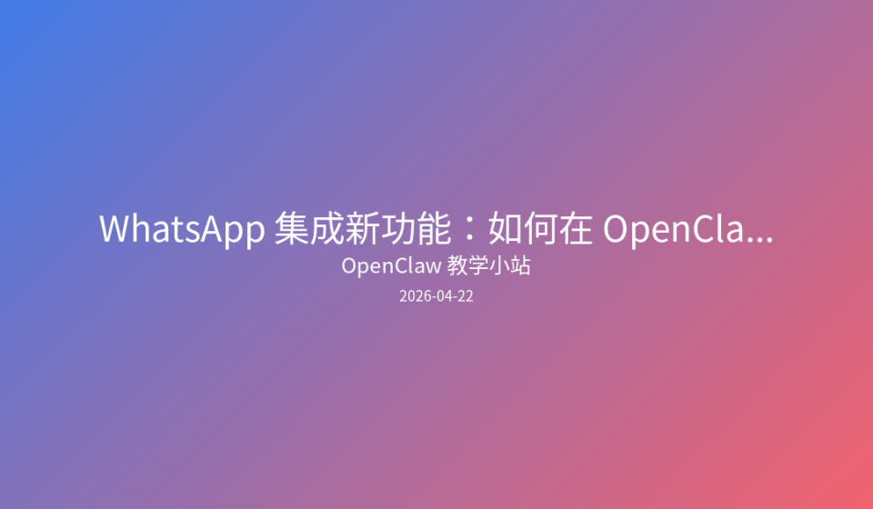 WhatsApp 集成新功能:如何在 OpenClaw 中配置群组与私信系统提示词已关闭评论